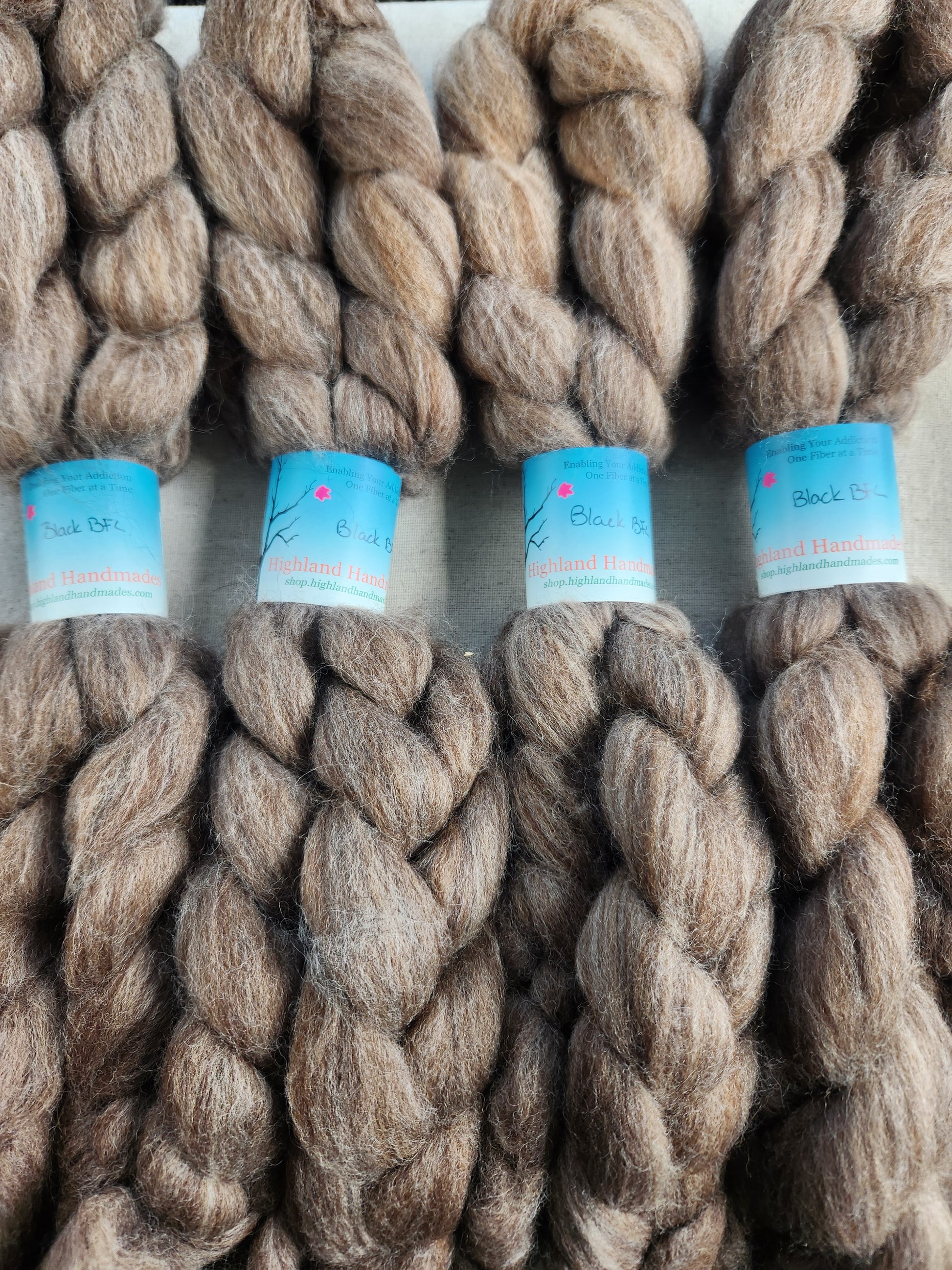 This listing is for a 4oz braid of "Black" BFL combed top. It is a bit heathered.